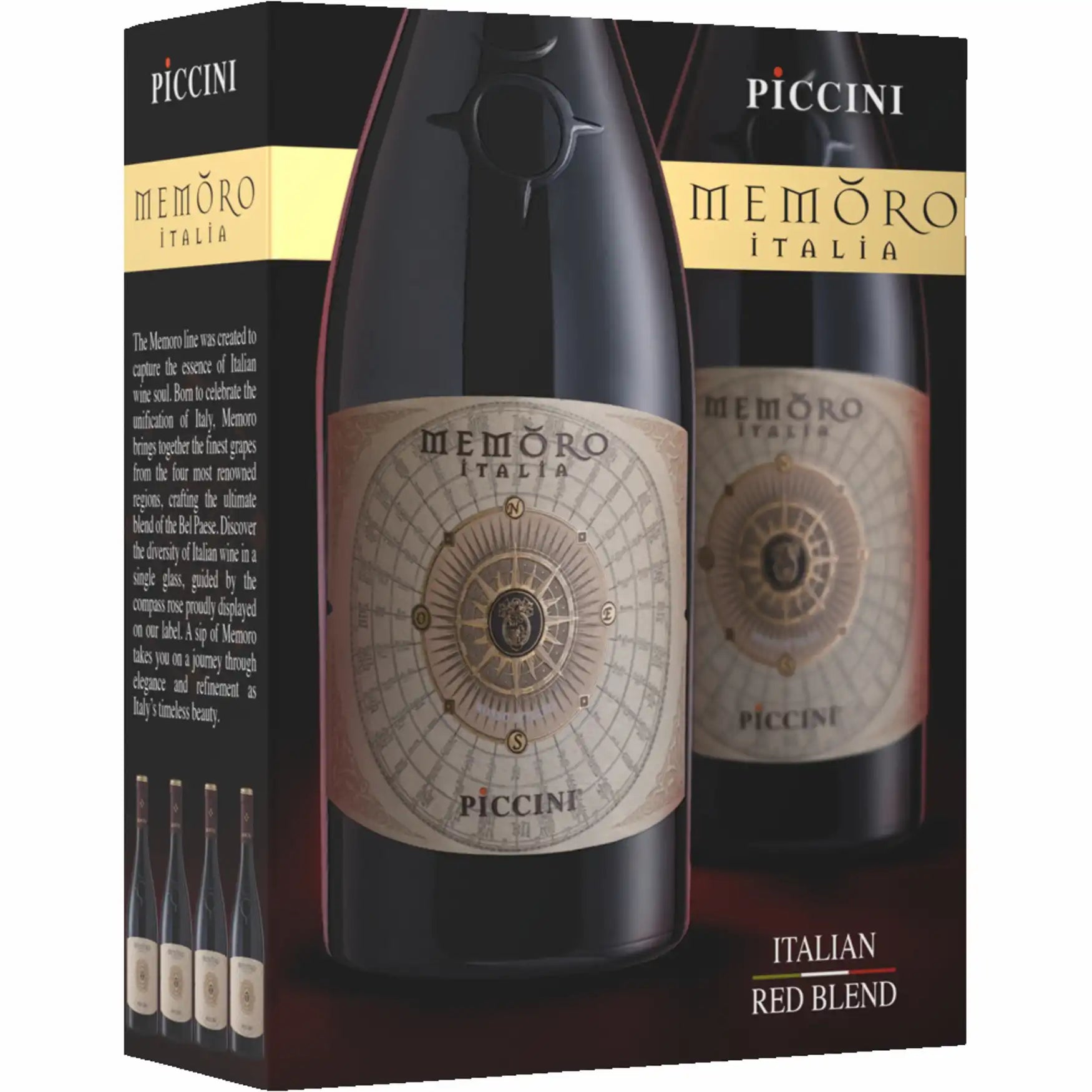 Memoro is a cuvée wine, a blend from all over Italy. Different grapes, but also from different regions and vintages. The Montepulciano grapes have been aged for 12 months in oak barrels, Abbruzzo, Sol Nero d'Avola comes from Sicily, colder climate (Veneto) Merlot and Passito Primitivo from Puglia. Tasting notes: Bouquet of dark cherries, figs, and coffee with a delicate oak flavor. The wine is concentrated and has a great structure, but is still harmonious and smooth. Serve with game or red meat.