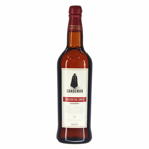 Sandeman Medium Dry Sherry develops its beautiful amber color during storage. The harmonious taste is characterized by a fine sweetness and from the first sip your mouth is filled with dry, nutty notes. Served lightly chilled as an aperitif or with ice and is perfect for appetizers.